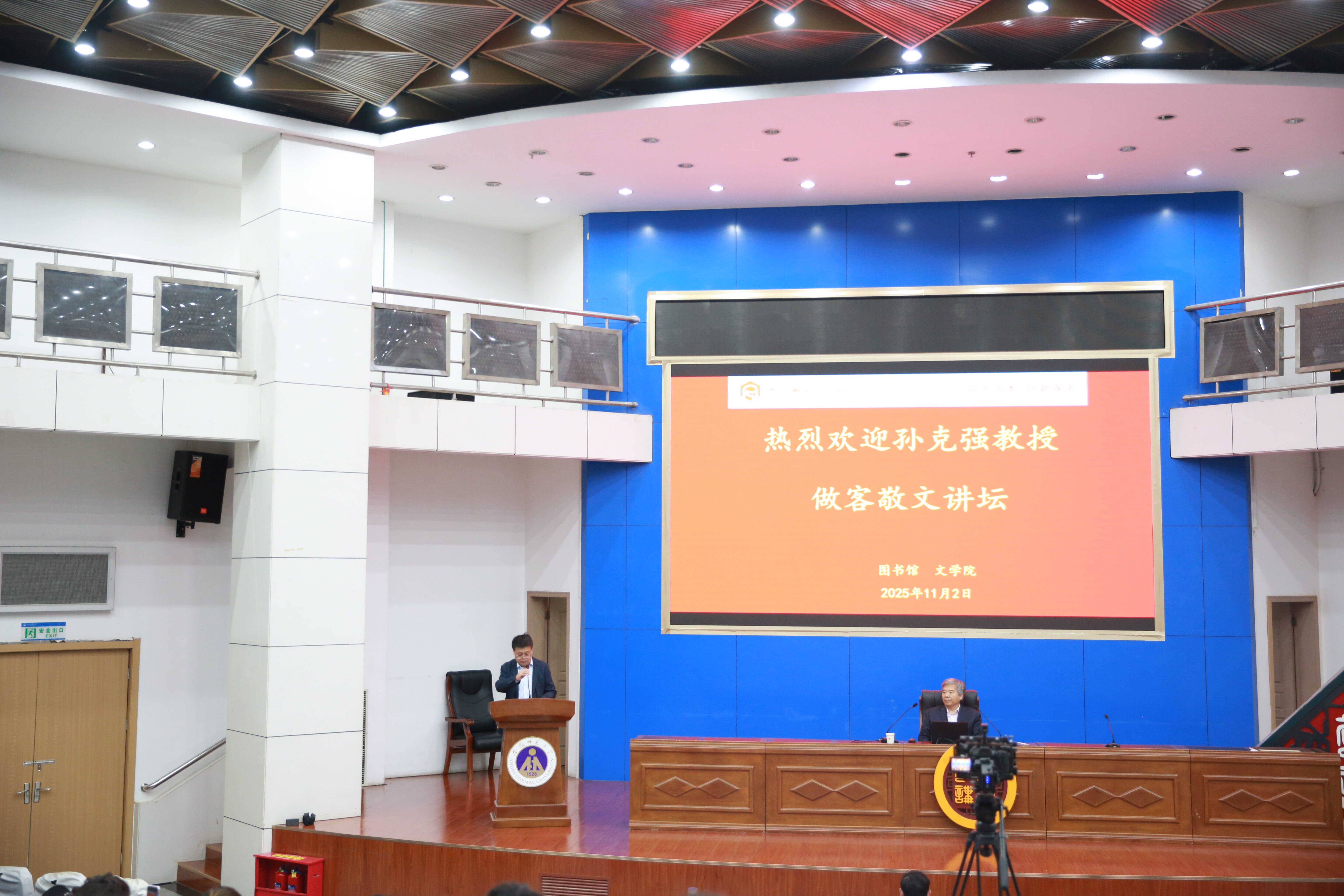 本网讯(文/鲁梦萍 刘雅洁 图/严永春 鲁梦萍)为勾勒雅韵与俗趣共舞的文学图景,共绘文学传承新篇章。11月2日下午3时,敬文讲坛2025年第五讲(总第159讲)在敬文图书馆国际学术交流中心举行。南开大学教授、博士生导师孙克强应邀作题为“中国古典文学思想的雅俗之辨”的学术讲座。讲座由图书馆副馆长刘和文主持,全校四百余名师生现场聆听。