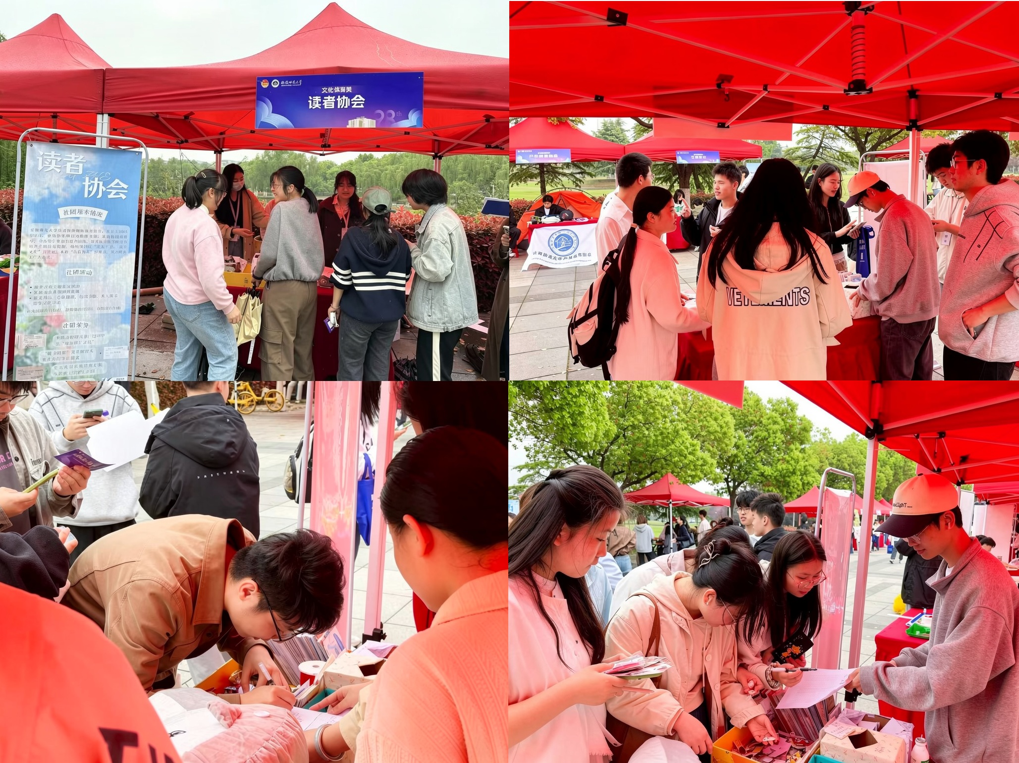 本网讯(文/张需梦 李毅 图/李毅)春和景明,书香伴韶光。为献礼建校98周年,4月11日上午9时,图书馆读者协会在花津校区津南草坪举办“春日雅集,社彩飞扬”主题社团文化节。活动设置三大互动体验区并打通线上渠道,吸引众多师生热情参与,为春日校园点染一缕书卷芬芳。