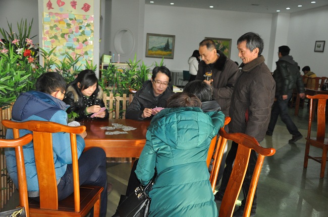 12月31日下午,图书馆分工会在敬文图书馆一楼书吧(大益爱心茶社)举办了以 “放飞心情、喜迎新春”为主题的庆祝2015年元旦活动。活动内容主要有“神奇飞镖”、“快乐掼蛋”两项,这两项大众化的趣味竞赛得到了图书馆职工的积极参与,参与率达到96%,是近年来图书馆职工参与面最广的一次活动。